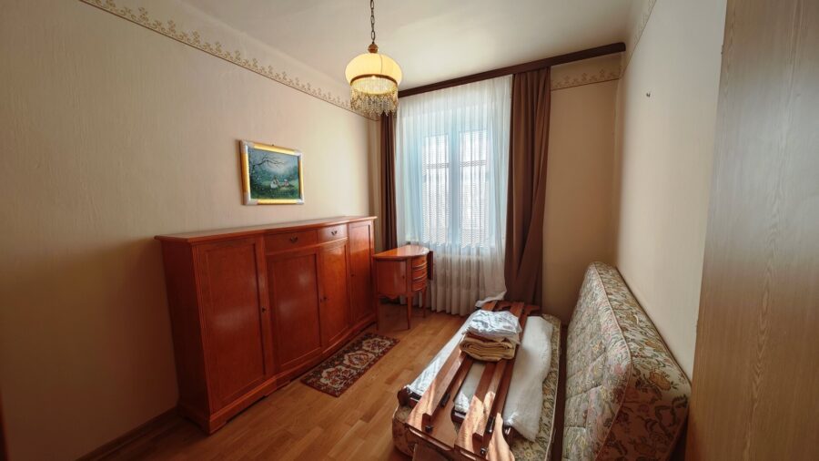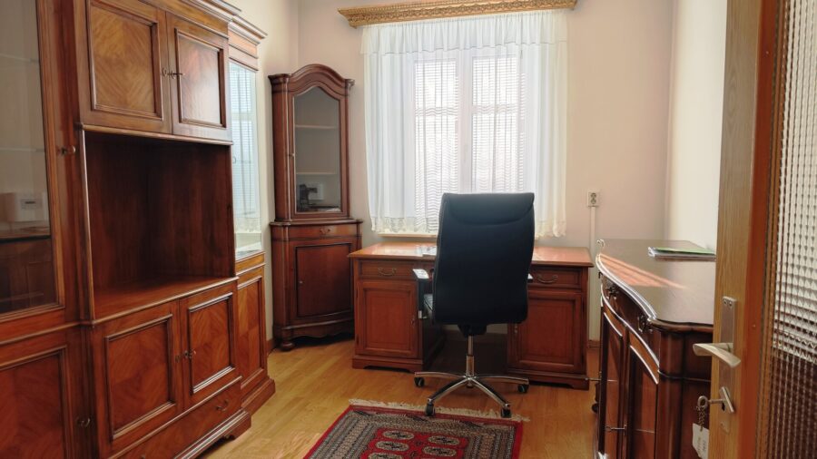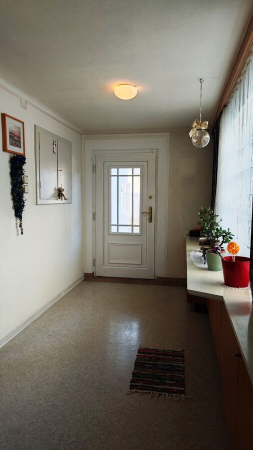 Das Haus wird über wenige Stufen betreten und empfängt Sie mit einem praktischen Windfang. Von hier aus erreichen Sie sowohl das großzügige Badezimmer, ausgestattet mit Badewanne, Dusche und Fenster, als auch den zentralen Vorraum. Die Raumstruktur bietet vielfältige Nutzungsmöglichkeiten: Vom Vorraum gelangen Sie direkt in die gepflegte, voll möblierte Küche in gutem Zustand. Angrenzend an die Küche befindet sich ein weiteres Zimmer, das wiederum in ein Kabinett führt – ideal als Arbeitsbereich, Gästezimmer oder Hobbyraum nutzbar.