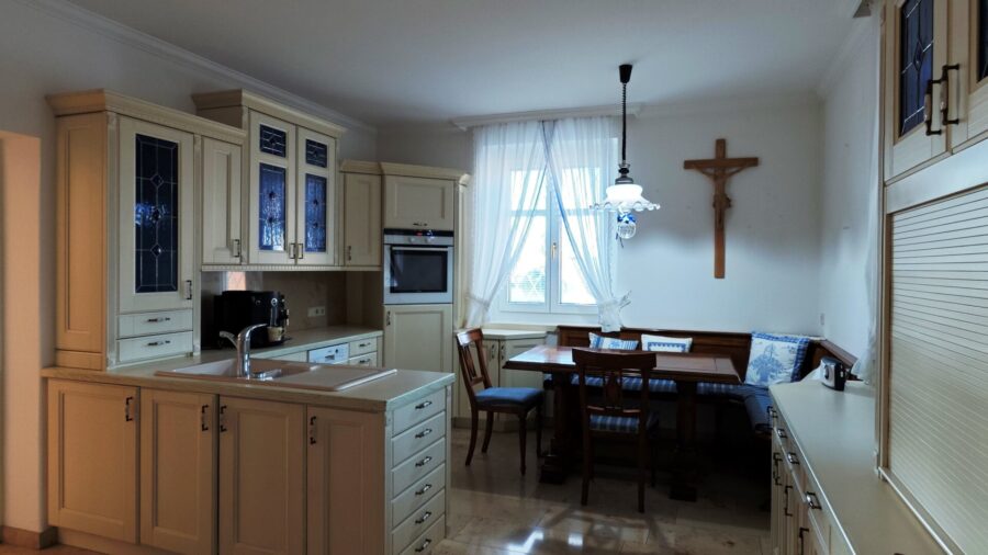 Die Küche ist vollständig möbliert. Bei Bedarf können Möbel im Haus verbleiben, sodass einem sofortigen Einzug nichts im Wege steht.
