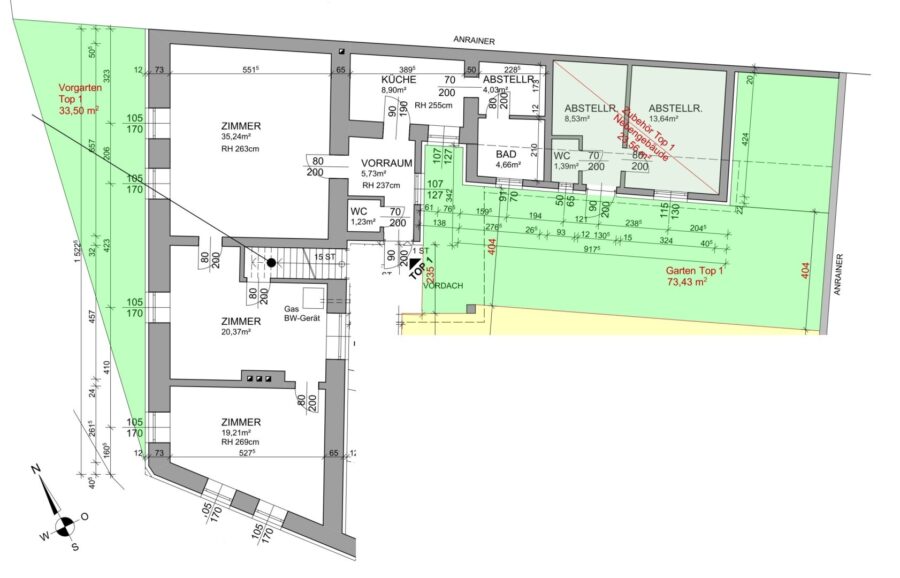 Wichtiger Hinweis: Die Einheiten Top 1 (Erdgeschoss) und Top 2 (Dachgeschoss) werden ausschließlich gemeinsam verkauft.