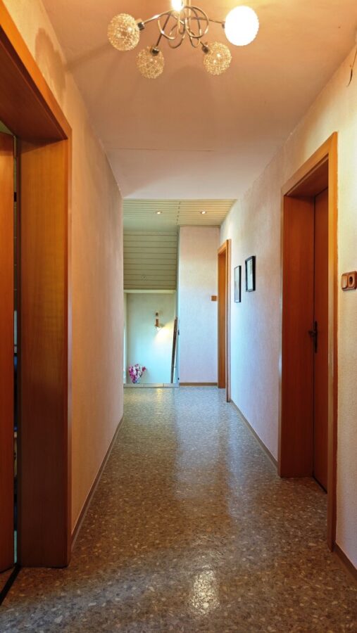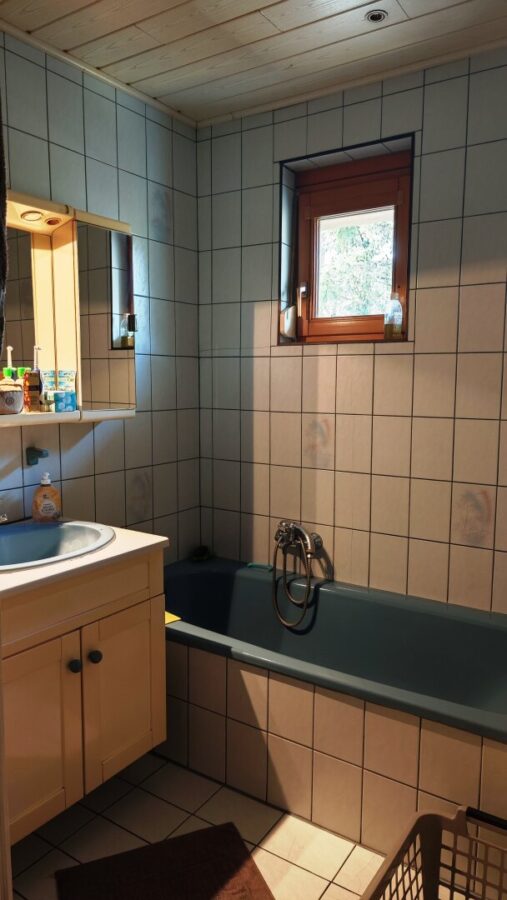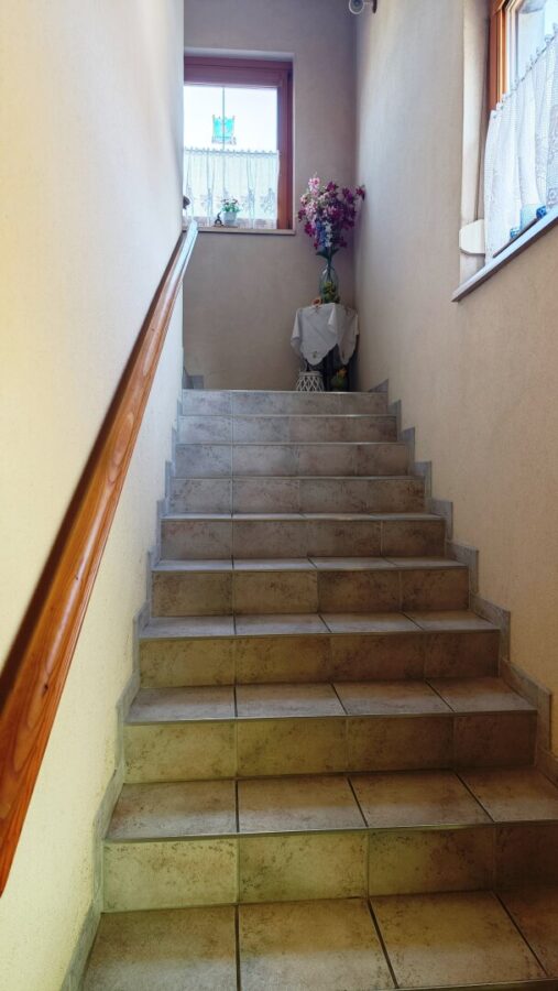 Im Obergeschoß befinden sich eine weitere Küche, ein Wohnzimmer, zwei Schlafzimmer, ein Badezimmer mit Dusche und Badewanne sowie ein separates WC. Sowohl Bad als auch WC verfügen über Fenster.