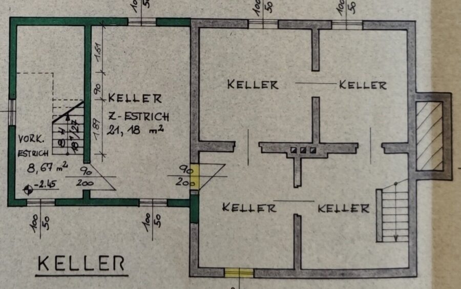 Der Keller umfasst insgesamt sechs Räume und bietet ausreichend Stauraum sowie eine Waschküche und den Heizraum mit Gas-Zentralheizung.